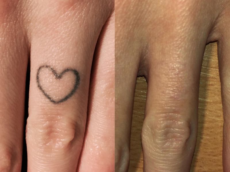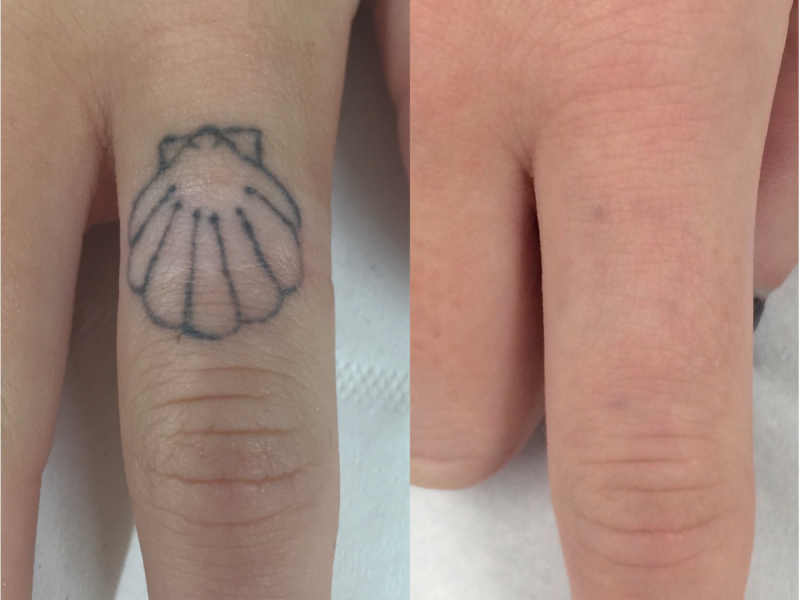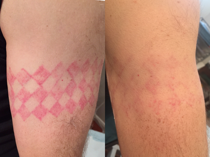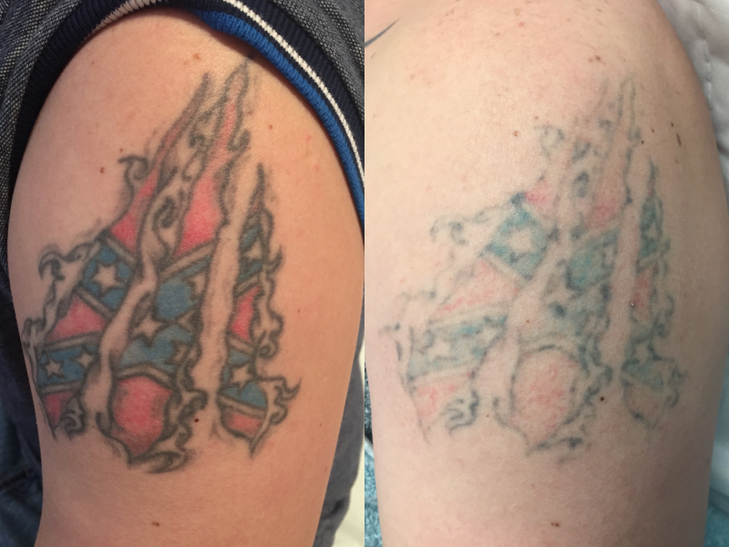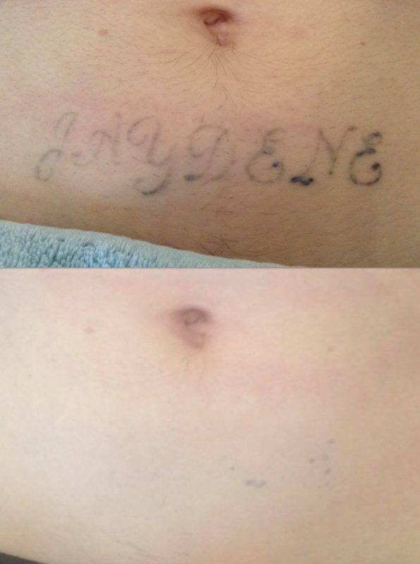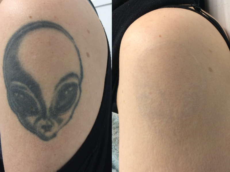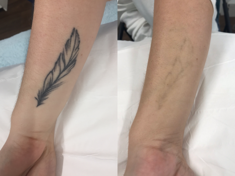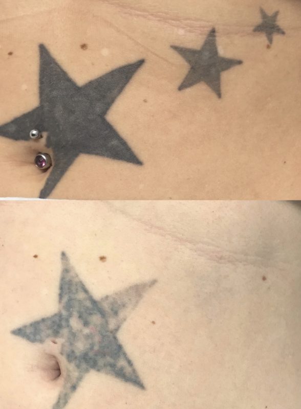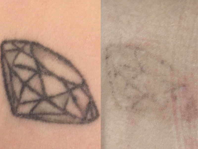 Pre-treatment photo shows little fading after 2 conventional laser treatments. But tattoo almost gone after 6 Picosure treatments